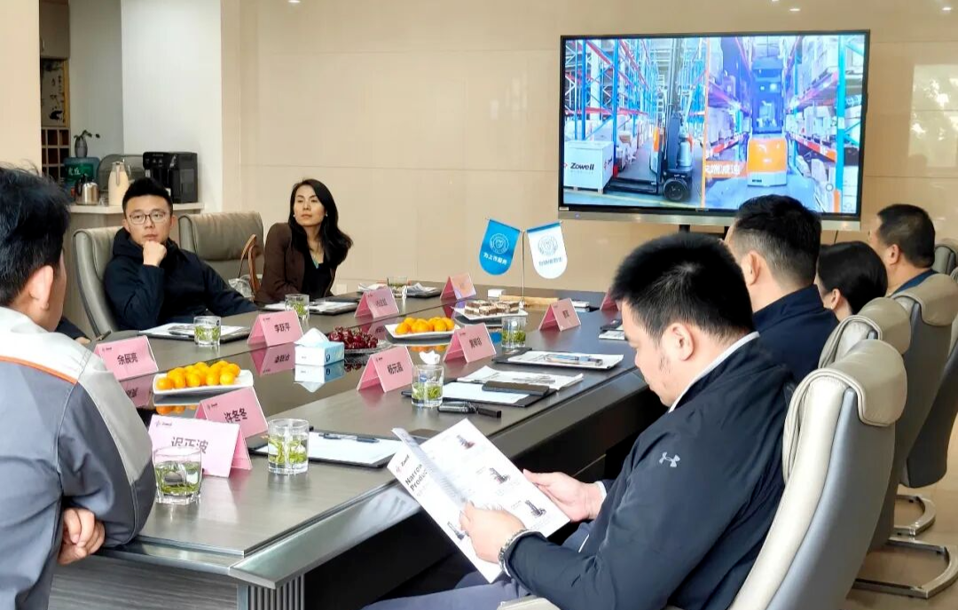 在吴总与迟经理的陪同下,私董会企业家一行参观了公司办公区、企业展示墙,初步了解了卓一智能叉车的发展历程、企业文化,为后续交流奠定了良好基础。