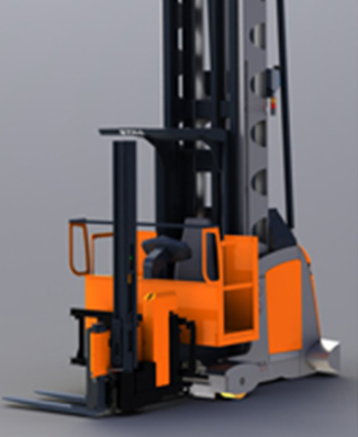 非常窄巷道AGVs(VNA)用于高棚库的巷道中。通常,非常窄巷道小车安装在配送和仓储设备里。由于可以在很窄的巷道中运行,因此可以替代传统的人工操纵VNA小车。