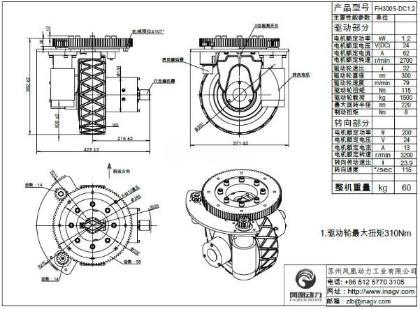 凤凰动力 FH300S/4kw/AGV驱动舵轮总成系统