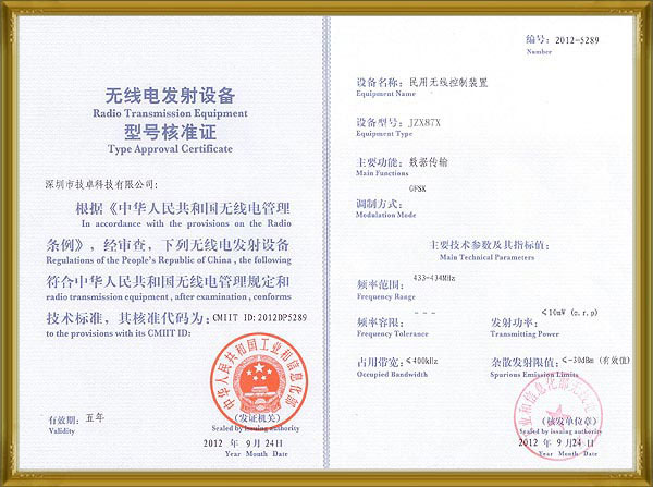 采用GFSK的调制方式,视距可靠传输距离可达2000m;
