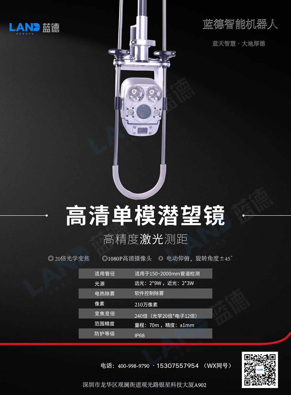 管道内窥镜,管道QV潜望镜,管道检测设备 www.landrobots.com