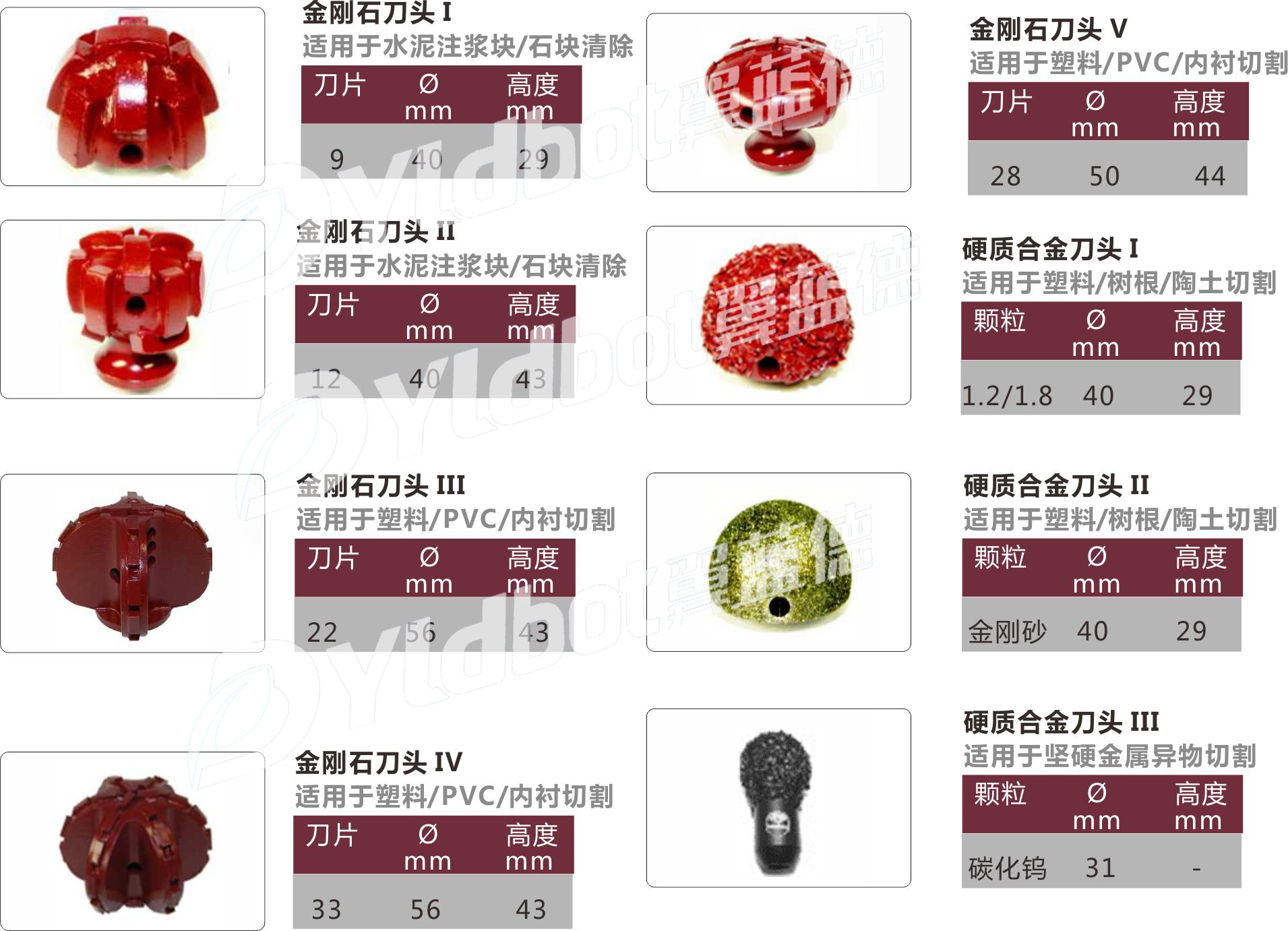 用于小型/中型管径的室内和市政管道打磨修复,切割臂直径约120mm