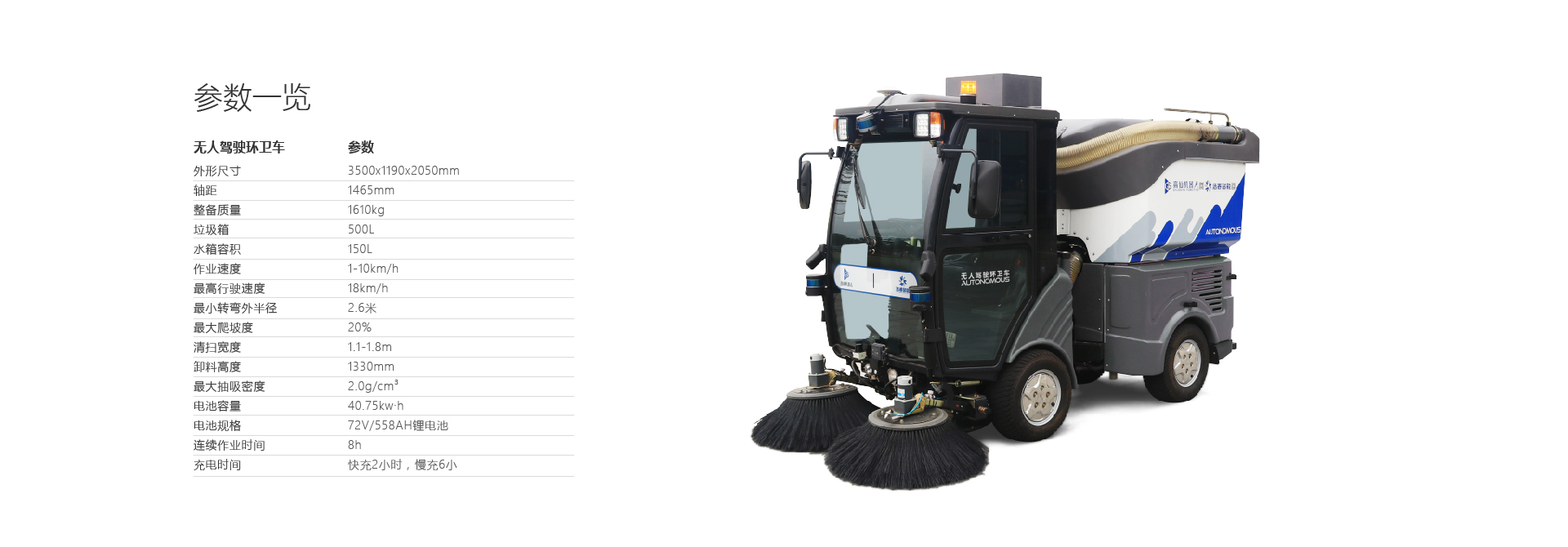 一款应用于开放式、封闭/半封闭式场景中,满足公园、步行街、园区、景区、交通枢纽、大型广场等路面清扫需求的无人驾驶环卫产品。