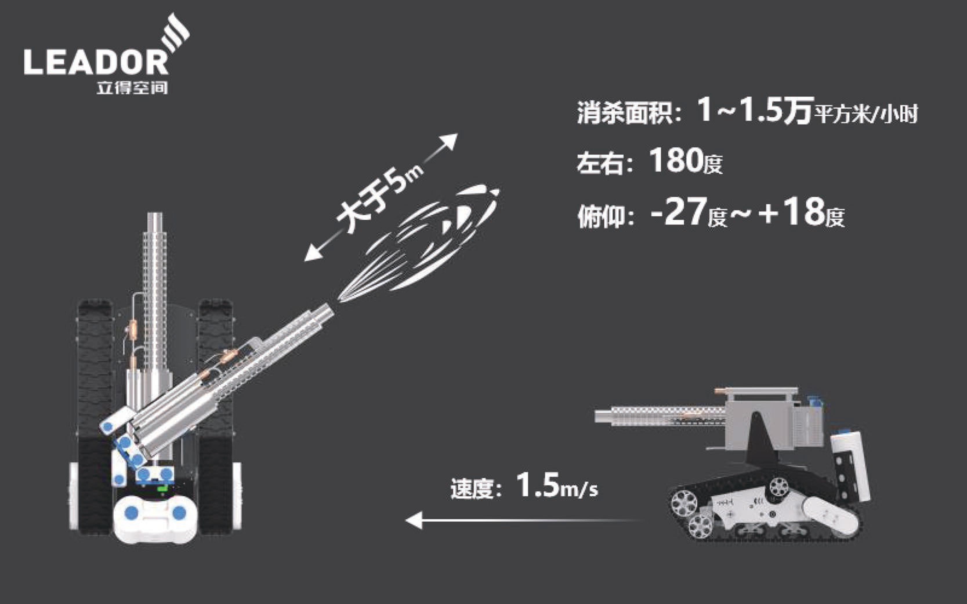 为防控新型冠状病毒肺炎疫情,立得空间推出履带式智能喷洒消毒的重要武器——智能消毒防疫机器人XS-02。该机器人是由药液箱、汽油箱、履带底盘等集成,能够实现自主导航定位,路径规划、精确控制及自动喷洒消毒液功能。能够在街道、社区、医院、火车站等场景完成自主来回喷雾全方位、无死角的消毒功能,较传统人工消毒方式,具备消毒范围更广、更安全、更全面的优势,大大提高防疫消毒效果和工作效率,以此严防疫情传播,筑牢防控疫情的卫生安全线。
