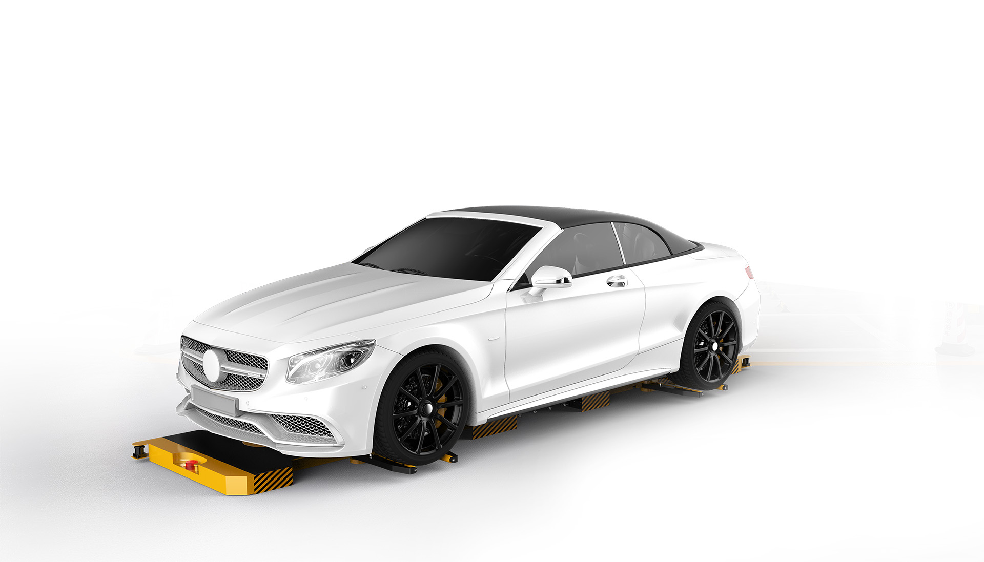 汇聚OMV夹持式停车机器人无需借助载车板,梳齿,支架等辅助设施,可以直接进入车辆下方,通过机械臂自适应不同车型的轮距,轴距,直接夹取车轮,移动车辆.