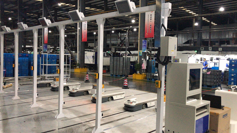 基于磁导航技术,结合地面FRID功能地标卡辅助定位,实现周转物料车的全自动配送