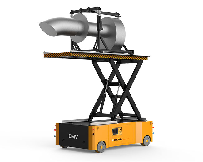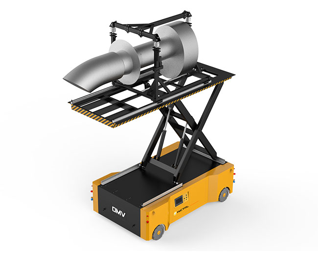 OMV飞机发动机安装设备配备麦克纳姆轮技术,无线遥控等功能,作为发动机安装作业车,能实现发动机的半自动化安装工作,颠覆传统的人工采用行车吊运安装的方式,该车操作灵活,零回转半径,能在狭小的场地更加高效的工作,配置多种操作方式,控制精度高,其独特的全向轮可以实现任意方向移动,能在狭小的场地更加高效的工作,可让装配工作更安全、高效、便捷。