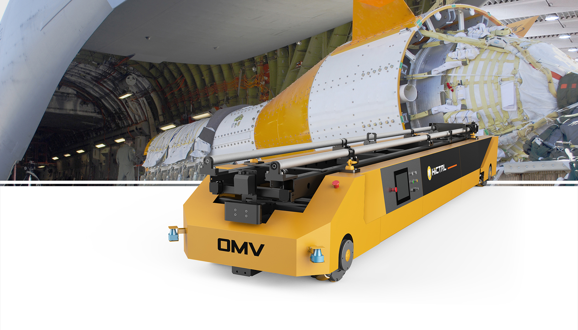 OMV特种转运设备利用麦克纳姆轮实现零回转半径、侧移、全方位无死角任意漂移,全方位自动导航,最合理的路径规划,去掉人工每个工位的转载、对接。直接提升装配效率。动力导航平稳衔接各部件、各工位。全方位自由移动,真正实现柔性装配,上位机合理规划适合流水线的最佳路径,让超长设备在车间里各工位运行自如。