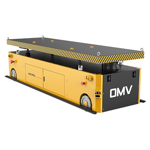 OMV背负式机器人采用麦克纳姆轮作为行走驱动轮,设备的行走路径由软件进行差补计算,可实现二维平面内任意方向的移动功能,包括直行、横行、斜行、任意曲线移动。在车头车尾有非接触式激光避障传感器,检测到障碍物后自动停止运行,障碍物移走后自动恢复运行;车上搭载有电动螺旋升降机,可满足120mm高度范围内升降功能,承载能力500Kg。