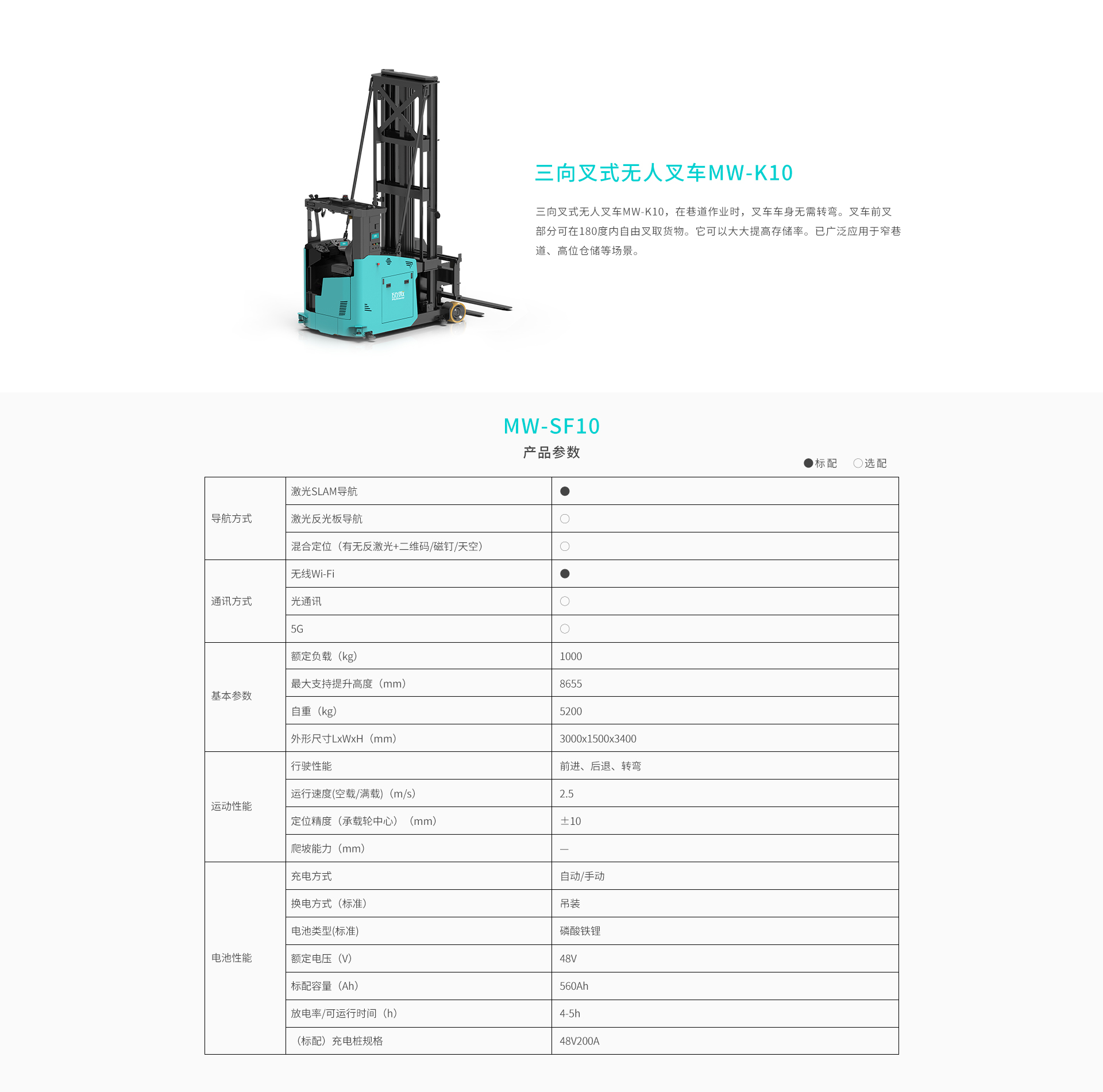 劢微:三向叉式无人叉车MW-K10