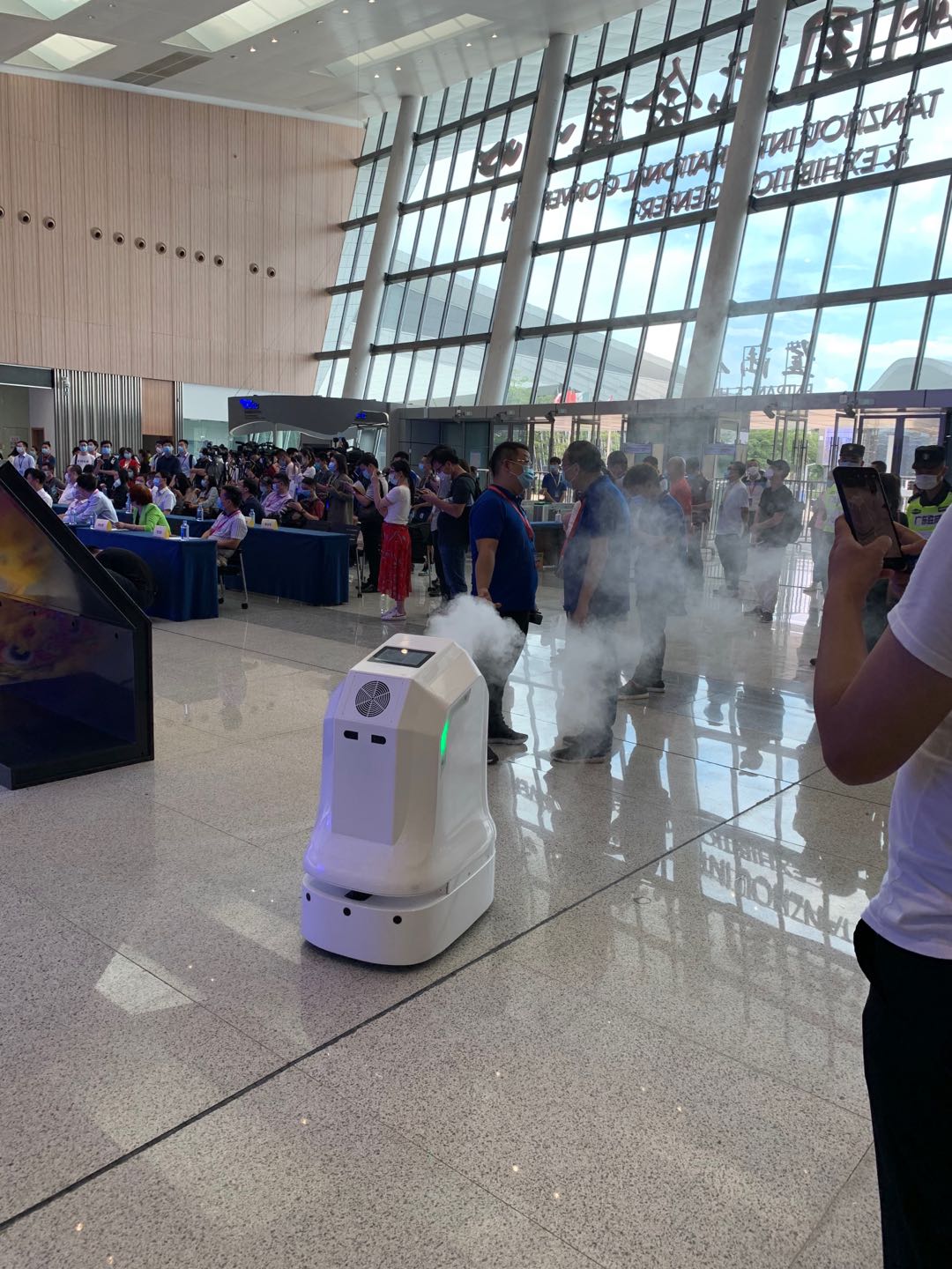 消毒机器人是华南智能机器人创新研究院自主研发的一款服务型消毒机器人,它采用自然导航技术,实现自主定位,自动避障。消毒水用量为0.5~2升/小时。可广泛应用医疗卫生机构、各类公共场所,食品加工、工厂厂区、科技馆、博物馆、政务大厅、展馆展厅等多种场合。