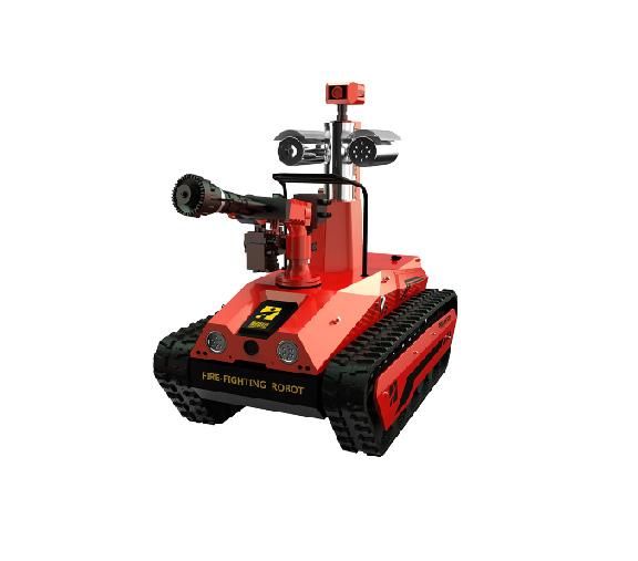 勇士一号”智能消防灭火侦察机器人采用全地形履带行走机构底盘,机动灵活,可原地转向、爬坡、爬楼梯、越沟,整车防爆,可满足恶劣复杂地形环境情况下的快速作战需求;配备的80L/S进口消防炮,射程远,可有效满足灭火需求;主要用于石油化工、油罐区、大型仓库等大面积场所的火灾;尤其适用石油、化工、大跨度厂区等易爆、易坍塌环境,提高救援安全性,减少消防人员伤亡。