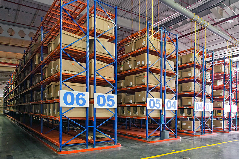 窄巷式货架的堆垛通道宽度稍大于托盘货物的宽度,使高密度存储需求得以实现,同时继承了横梁货架的优点,所收纳的物料具备任意的可选性,叉车可以随时存取任一托盘货物。