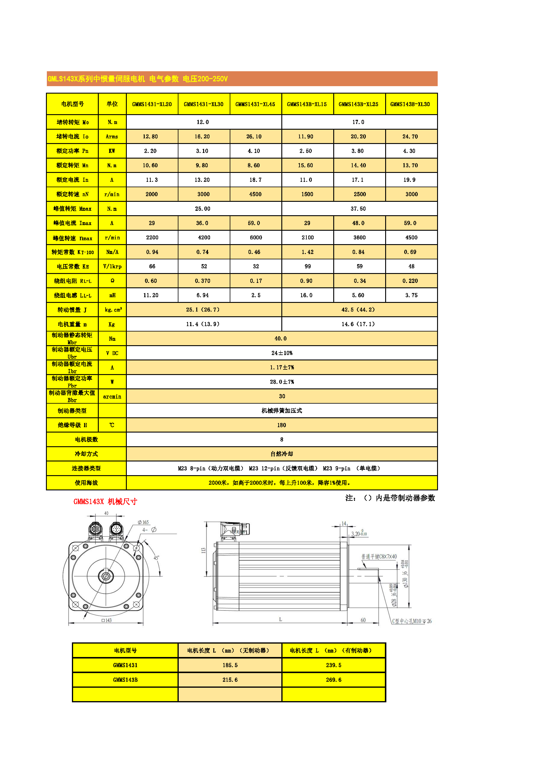 GMMS1431无刷交流伺服电机有:GMMS1431-XL20,GMMS1431-LX30,GMMS1431-XL45,GMMS143B-XL15,GMMS143B-XL25和GMMS143B-XL30几大系列,电机具体型号请按照选型页选型。