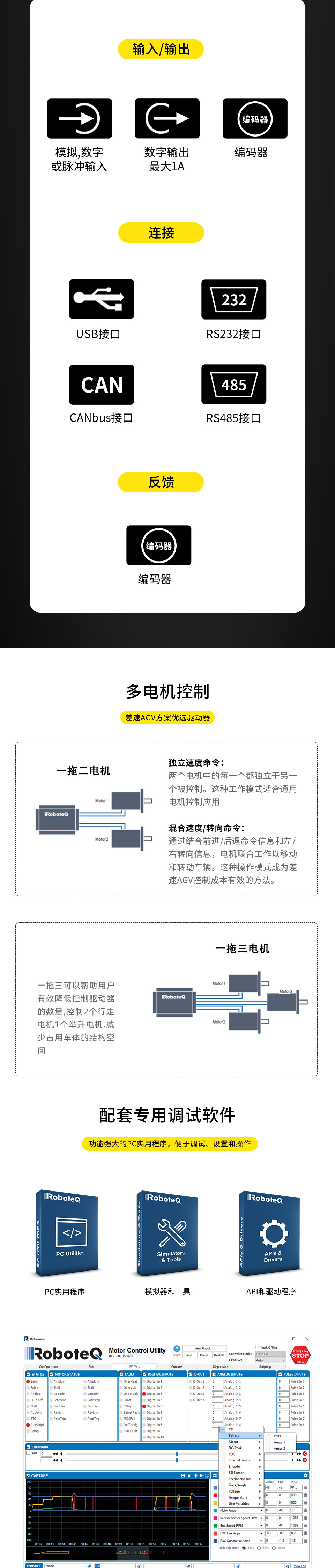 AGV车电机驱动器马路达电机马达控制器roboteq直流交流伺服控制器