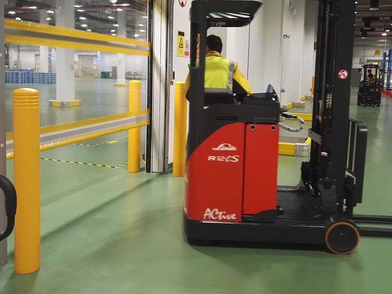 更安全、更结实。具有迈客专利的弹性立柱在发生碰撞时:高分子材料外壳可吸收部分能量并旋转卸力、同时高强度弹性内芯及叶轮式弹性负载轮连同底座的缓冲设计在很大程度上化解了碰撞的能量,碰撞结束后立柱恢复原状。很好的保护了地面的完整及人员和设备的安全,极大的降低了维护的成本。该产品没有外露螺丝,该设计能够很好的减少叉车轮胎的“啃胎”情形。