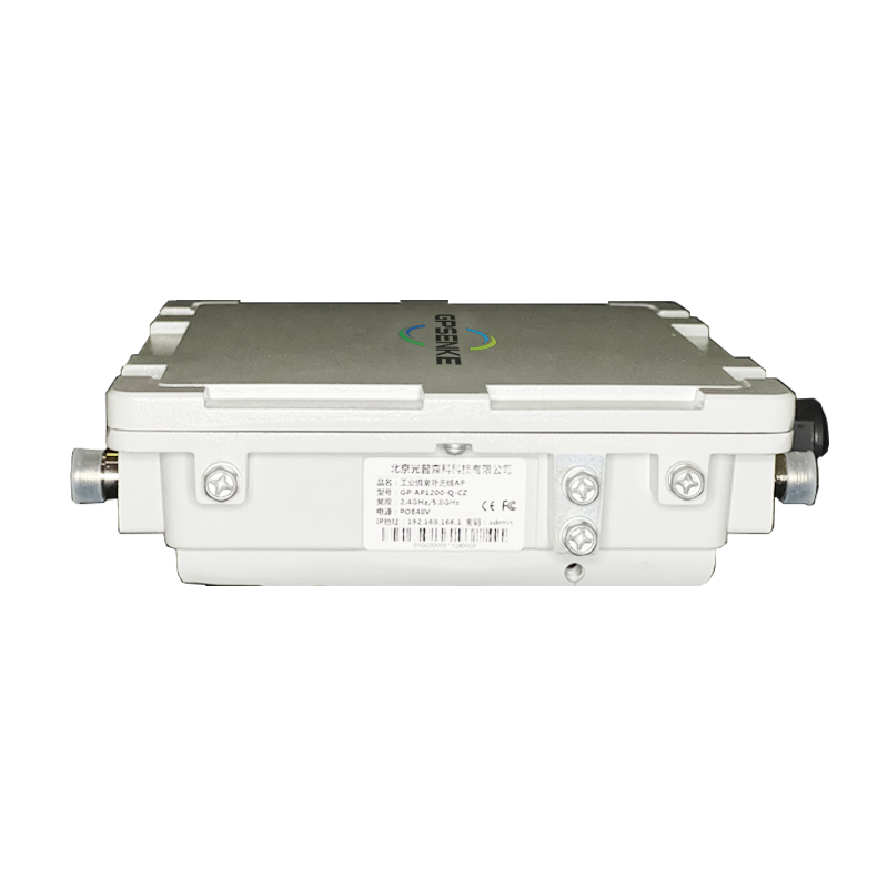 GP-AP1200 是一款同时支持 802.11b/g/n 和 802.11a/n/ac 标准的高性能、高带宽、多功能、室外工业级双频无线 AP,该 设备基于 802.11n 的 MIMO(多进多出)技术,采用了 2T2R 的构架,双频并发工作最高带宽可达 1167Mbps,可广泛用于在医疗、学校、 公园、景区、游乐场等室外场合的无线网络覆盖,全面兼容 802.11 a/b/g/ n/ac 协议的客户端设备接入。 GP-AP1200 的一个无线模块支持 802.11b/g/n 标准,工作在 2.4G 频率,最大发射功率为 1000mw,室外覆盖配合扇区天 线距离可以达 500 米以上。另一个无线模块支持 802.11a/n/ac 标准,工作在 5.8G 频率,最大发射功率 1000mw,相对于 2.4G 频段, 5G 频道占用率少,具有更多的独立频道和超强的抗干扰能力,极大提高了无线信号传输质量、网络带宽及稳定性,11AC 模式下时,最 高带宽可达 866Mbps。室外覆盖配合扇区天线距离可以达 500 米以上。 GP-AP1200 采用高通最新定制芯片优化算法,具有抗干扰能力强、带宽高、待机量高、稳定性强的特点。同时支持胖瘦一体模式, 图形化快速配置方式,典型功能:接入信号阀值限制、多虚拟 SSID、最大客户端数限制、VLAN、Qos 限速规则、WDS、国家地区设定、 高级射频模式等。本设备主板芯片大量使用进口高规格工业级芯片,采用铸铝合金冲压外壳及防水处理工艺并达到 IP67 防护等级,确保 在室外 -40~80℃恶劣高温、高寒、高湿等环境中稳定运行。