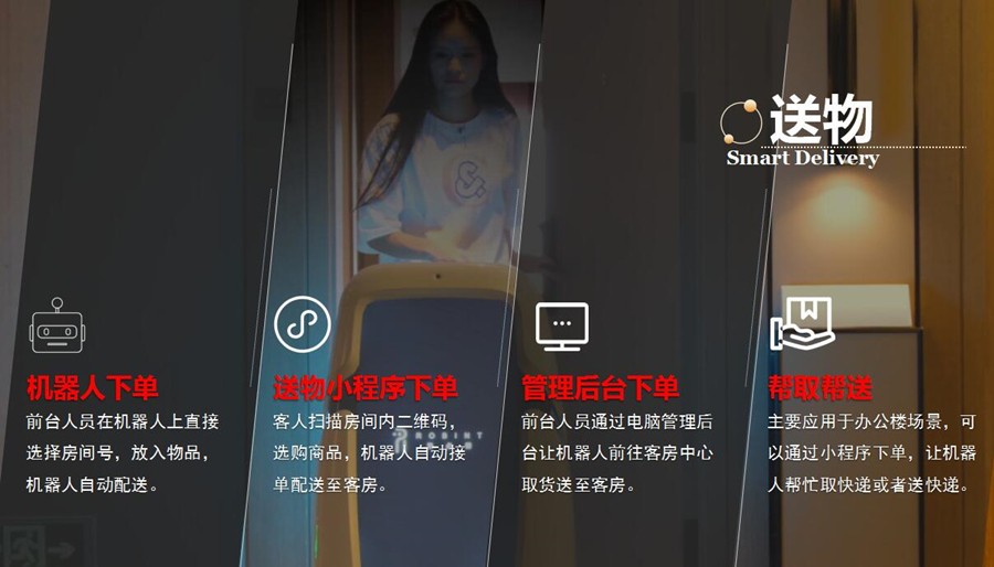 酒店房间配送机器人智能迎宾讲解机器人全自动客房送物送餐