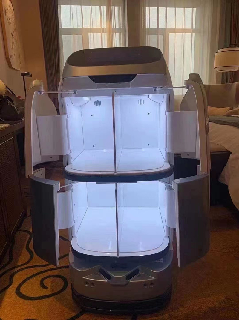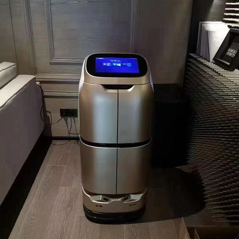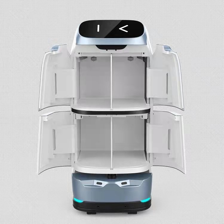 酒店送物机器人无人配送机器人语音播报外卖配送智能对话聊天取物