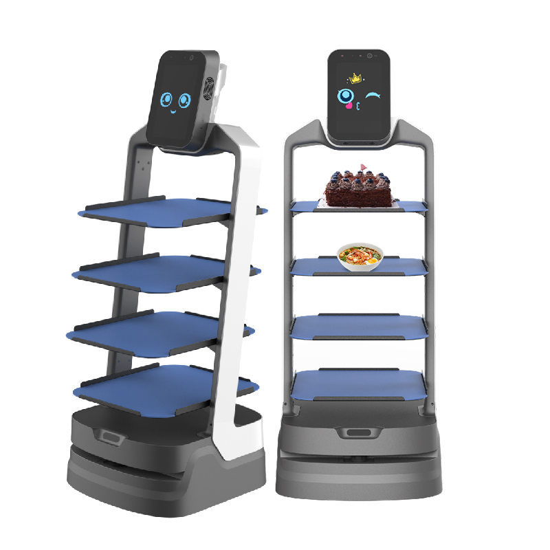 车间送物机器人多功能饭店餐厅揽客引位迎宾广告宣传送餐机器人