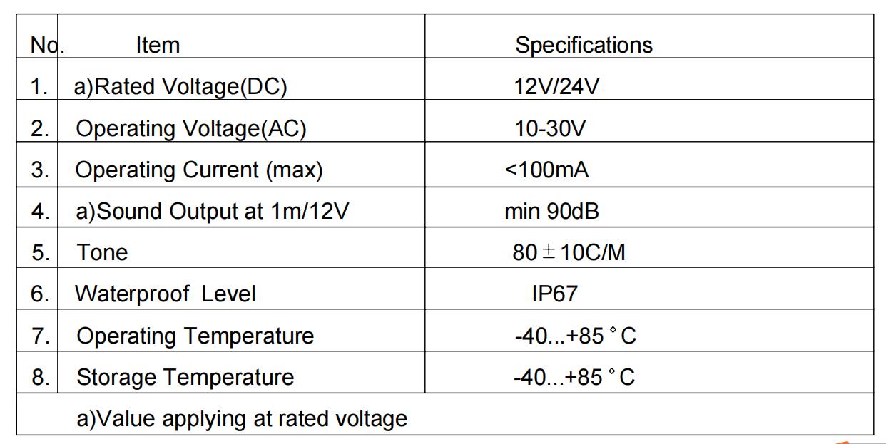 汽车倒车报警器ATS90P12-24V-01性能参数