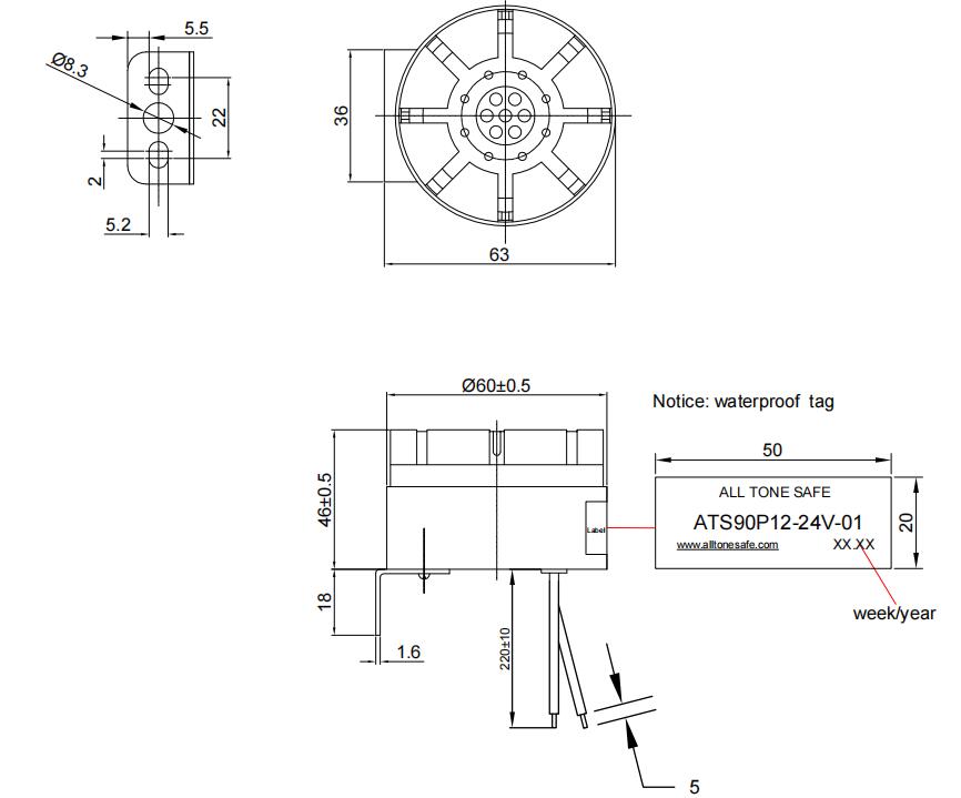 汽车倒车报警器ATS90P12-24V-01尺寸