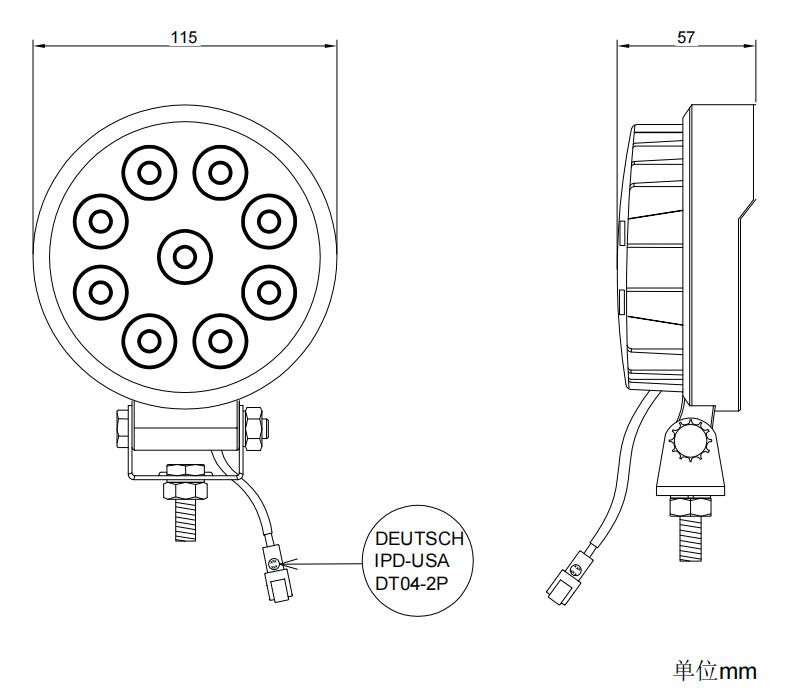 挖机吊机工程机械警示灯频闪灯ATL115C24VDC/IP67尺寸图