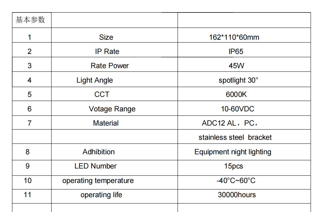 产品参数