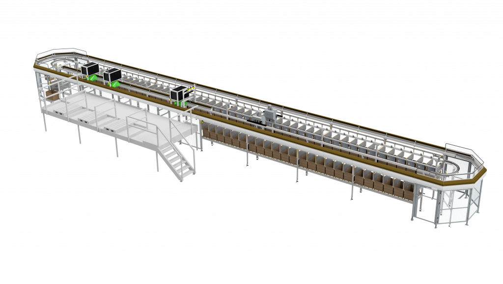 DistriSort 为这些公司提供了解决方案:用于时装业的预配置分离托盘分拣机。.