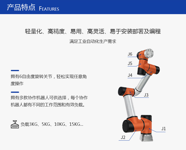 深圳泰科智能TB6系列协作机器人是泰科智能自主研发的6轴轻型协作机器人,具有拖动示教、安全防碰撞等功能,可以直接与人协同工作。采用自主设计研发RJSII系列关节模组,既轻便灵活、运行平滑柔顺,同时满足负荷的需求。防护等级高,可适用于更多苛刻的工作环境,既有强大的通用性、 协作性与开放性,广泛应用于物流装配、流水线生产、上下料、AGV、3C电子、科研、医疗、军工、航空航天等行业领域。安装简单(安装方式任意角度)及用途多样化,提升产品品质和生产效率,并更好的节约人工成本。