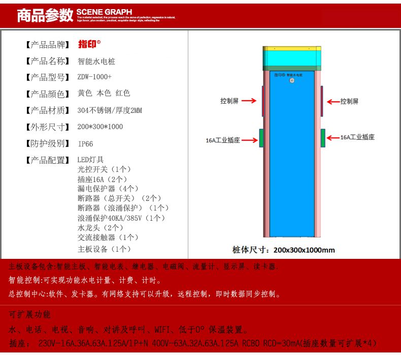 上海指印智能水电桩ZDW-1000I IP66 游艇码头岸电箱 岸电箱详细介绍