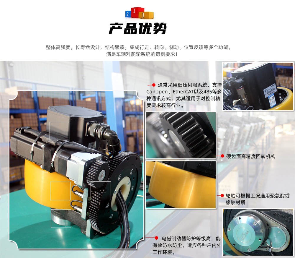 奥斯特建筑机器人舵轮200轮径承载300Kg奥驱移动机器人agv电驱动轮