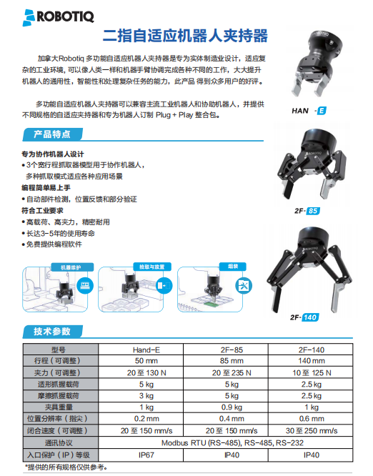 产品一:Robotiq 2F-85和2F-140 二指夹爪