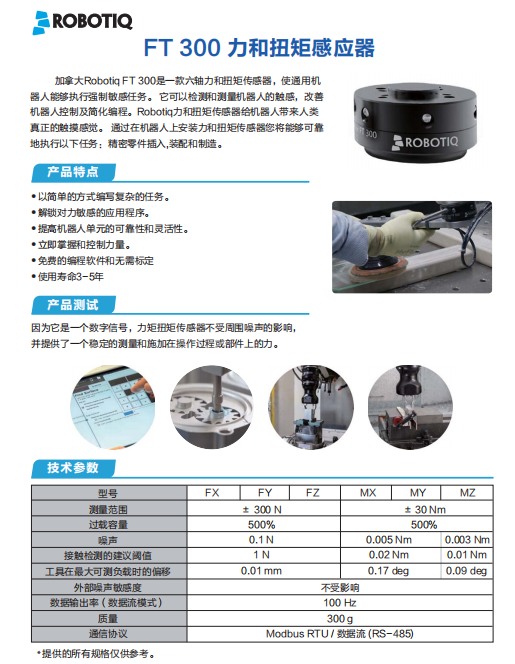 FT 300是一个多轴力和扭矩传感器,使优傲机器人能够执行强制敏感任务。通过自动化市场上的力敏感应用程序来改变您的生产过程。数分钟内即可编写复杂的机器人运动程序-无需机器人知识。