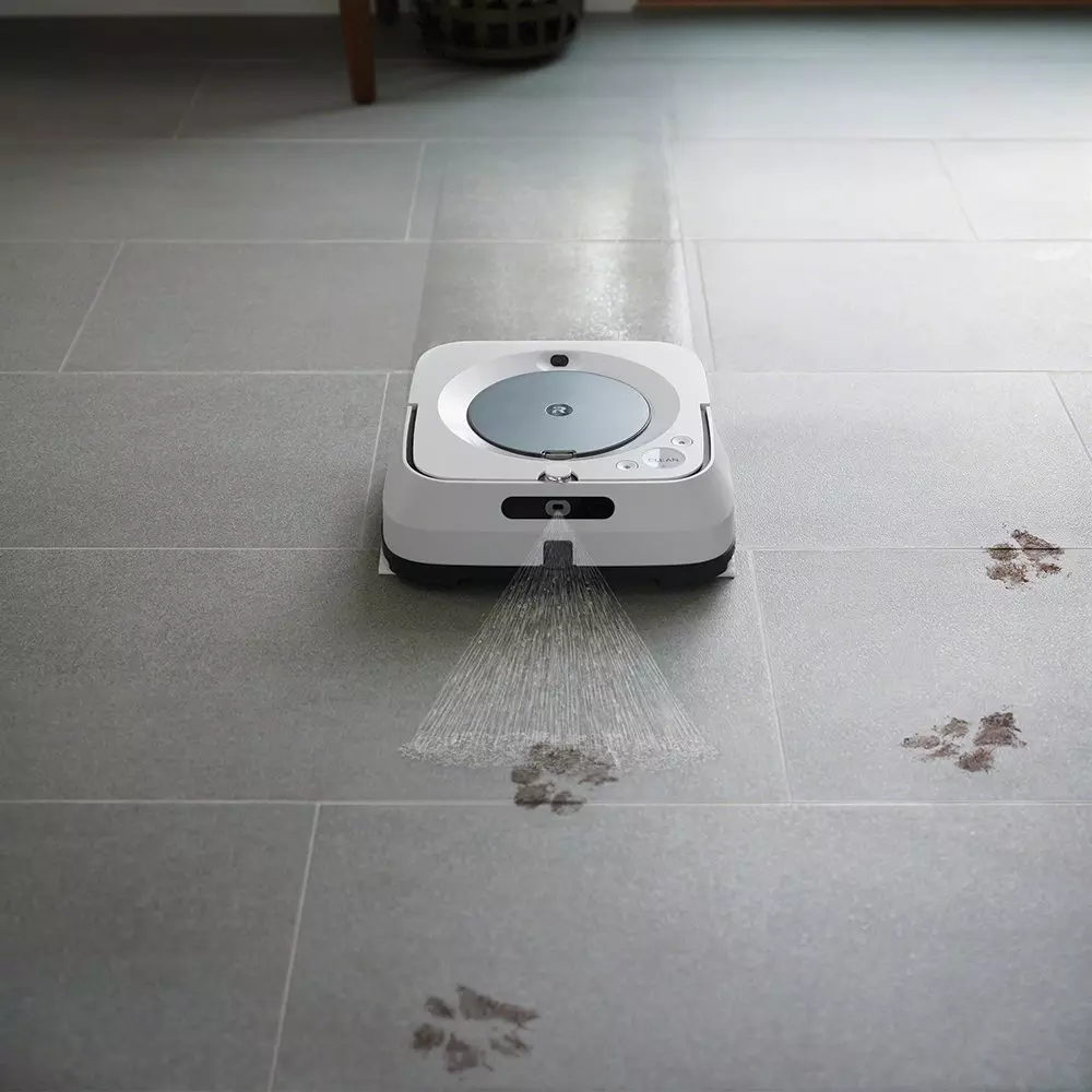从快速溢出和斑点到每周整地板拖地,m6 机器人拖把使用精确喷射喷雾来帮助解决粘性混乱和厨房油脂