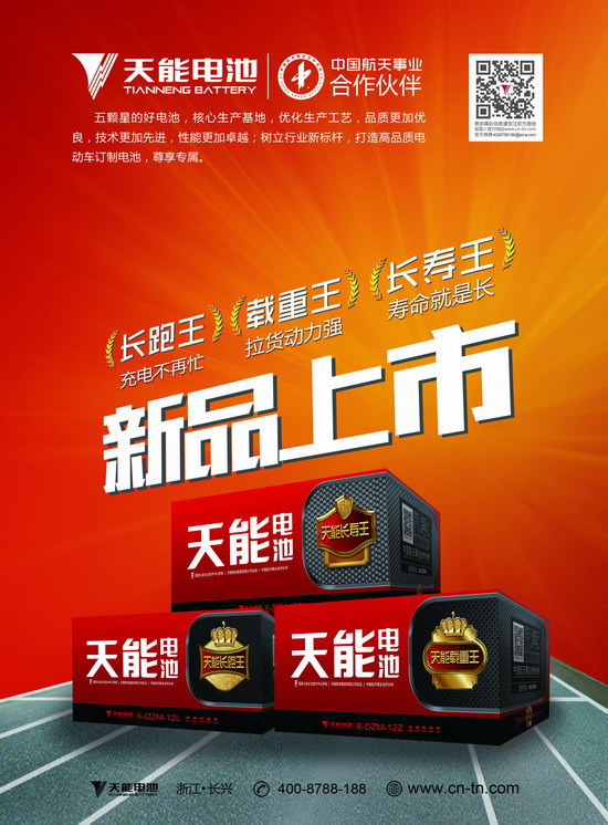 天能电池已连续17年销量遥遥领先,新产品为保证质量,在生产基地的选择,生产操作的控制,生产工艺的优化等各方面可谓做足了功夫,特别在技术上公关,国家级博士后科研工作站研发出了不同功能的高品质电动车订制电池。天能长寿王拥有五大专利技术,打造更耐用、更高效、更耐寒、更稳定、更美观的新一代高品质订制电池。