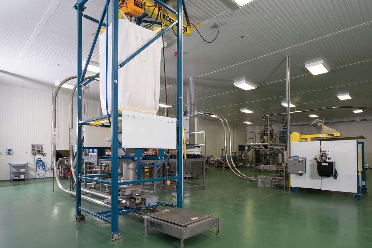 卸料站框架支撑结构吨袋起重装置吨袋吊架吨袋支撑按摩板袋口控制阀密封装置物料料斗:可以结合手套箱设计,实现对粉尘和气体与操作者的100%隔绝;可选择流化器,并可在料斗下加装破块器,也可对料斗进行称重,实现计量功能;出料设备:旋转阀+重力下料,螺旋输送机,振动输送机,管链输送机,旋转阀+气流输送,负压输送等;