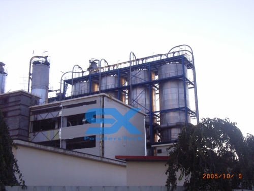 密相气力输送是成本最低的一种,为分批投料式系统,它通常适用于较短的输送管线距离及颗粒状的、流动性较好的、磨蚀性和非磨蚀性物料。如石英砂、塑料粒子等。它的组成部分有压力容器(发送罐)、电控系统、与输送管线共同组成。在进料过程中,物料通过双蝶阀或膨胀式蝶阀被加进发送罐中,置换出的空气通过排气阀释放出去,使得进料更加容易,同时也消除了阻碍物料流动的反向压力。当发送罐被装满时(通过料位计或称重设备显示,达到罐容积的80%)进料阀门与排气阀门同时被关闭并密封,而后通过进气阀向发送罐顶部加入压缩空气,加入的压缩空气与物料相混合,当罐内的压力达到设定值时便自动打开底部出料阀,此时便向整个输送管线施压,然后物料以柱塞状形式输送,直至物料排空。当发送罐内压力降为零时气力供给即被关闭,同时少量剩余的气体也被排出发送罐和输送管线。