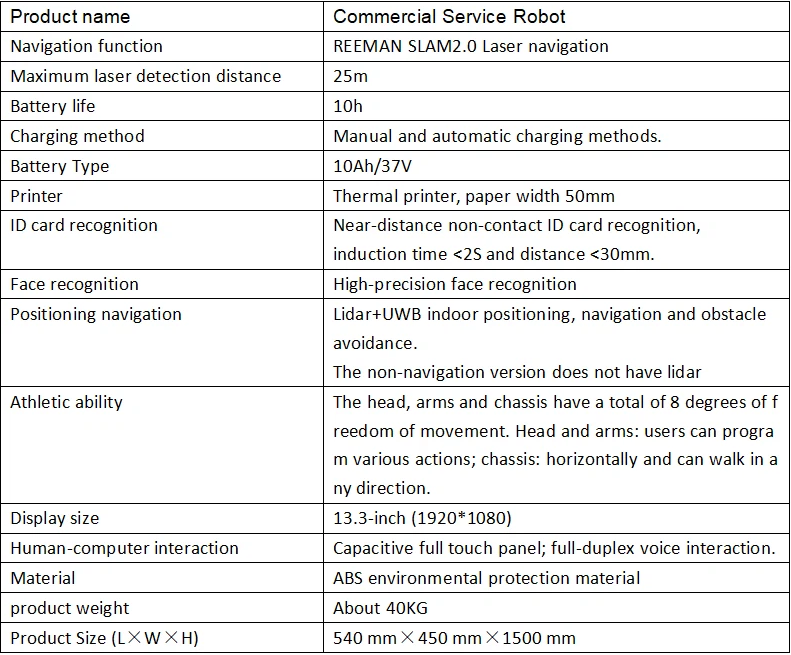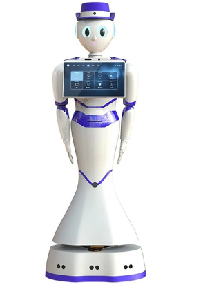 智能商用人形服务机器人是一款高科技智能服务机器人,全双工智能语音交互,室内自主导航,海量知识库存储,支持后台添加问答句,自动识别关键词,提供咨询、业务处理等。