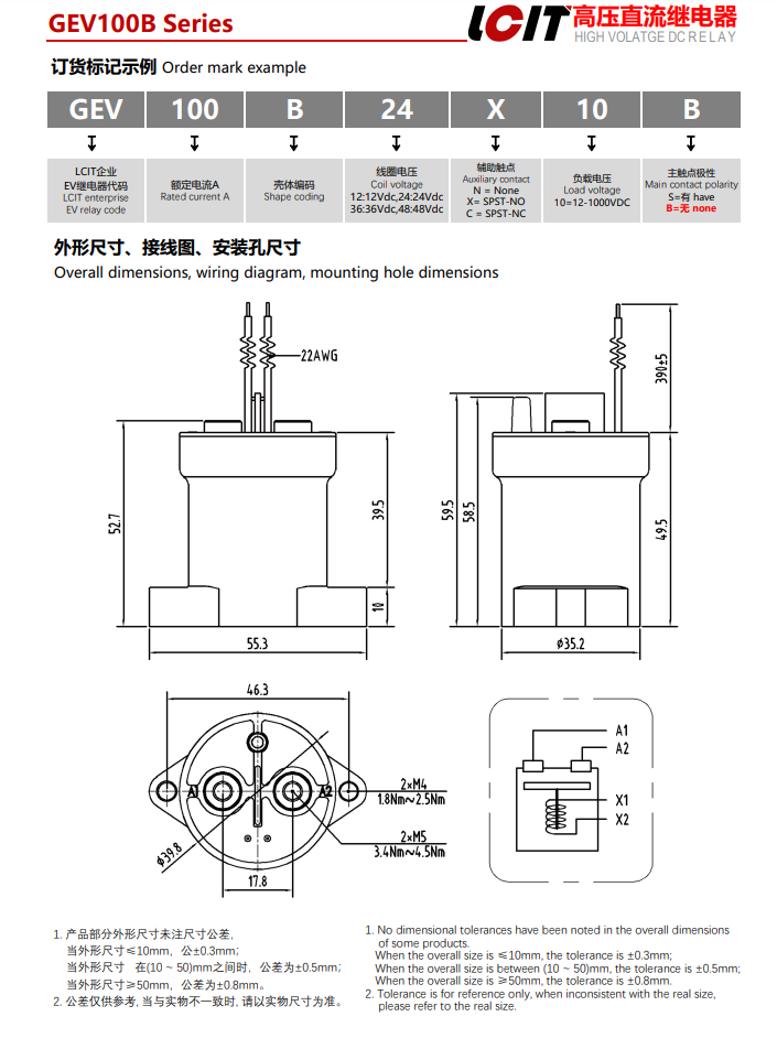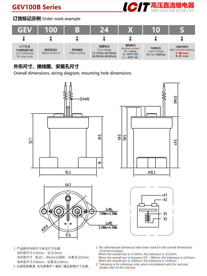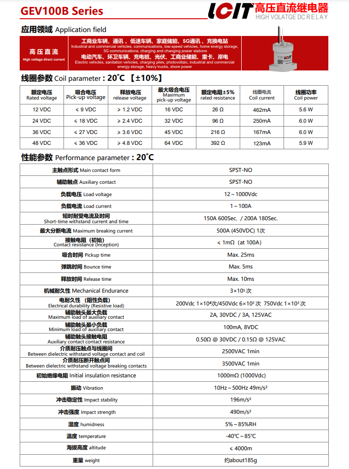 • 高压直流接触器 高压直流继电器GEV100B24X10S