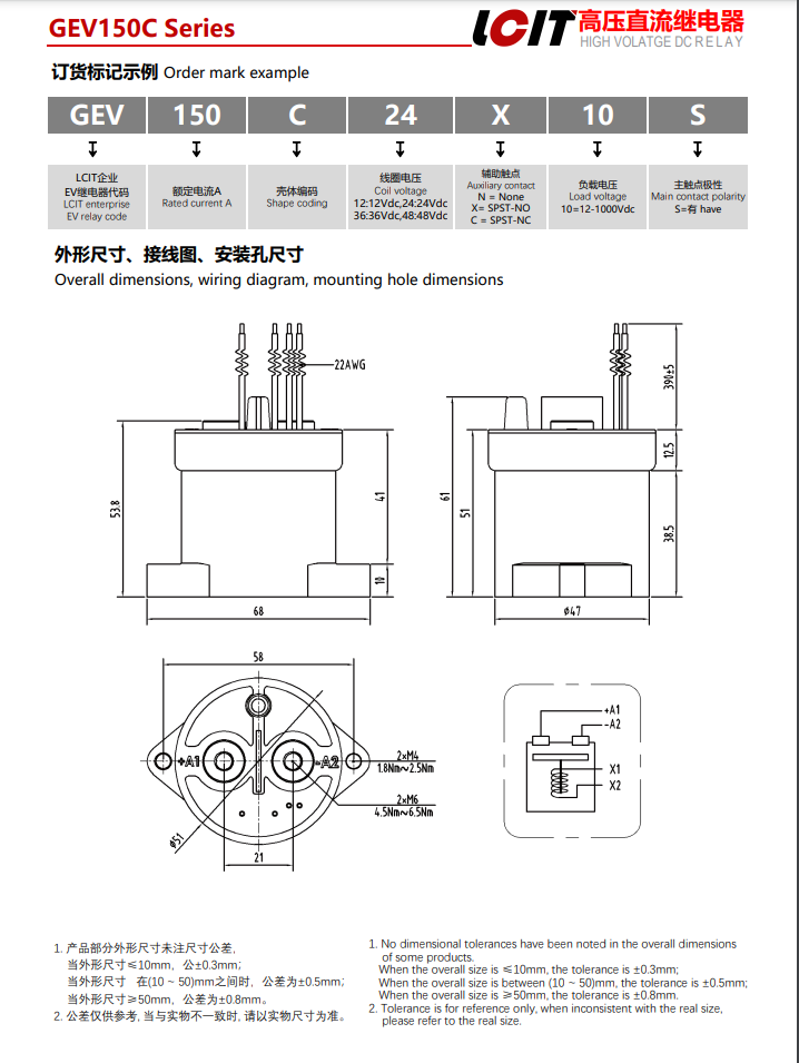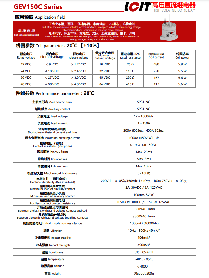 • 高压直流接触器 高压直流继电器GEV150C24X10S
