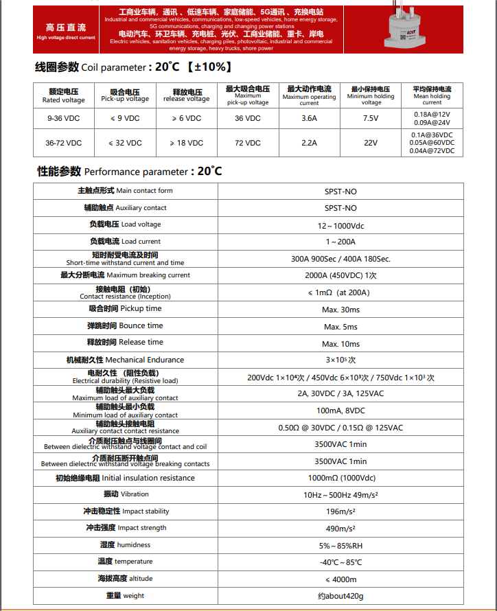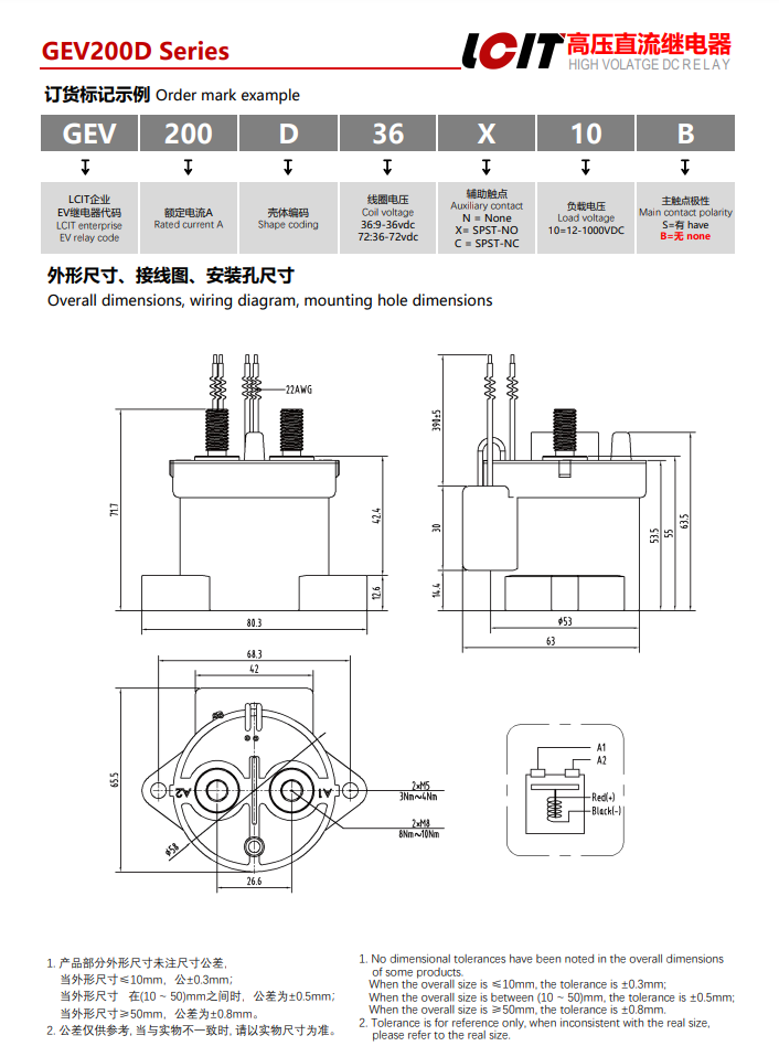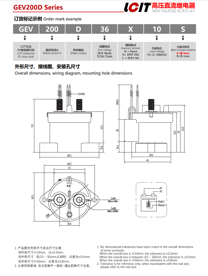 • 高压直流接触器 高压直流继电器GEV200D36X10S
