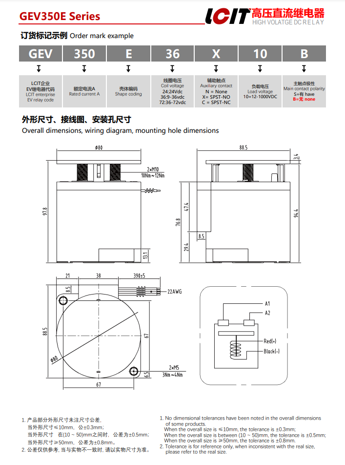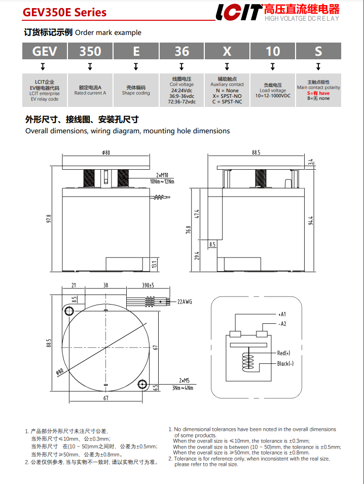 • 高压直流接触器 高压直流继电器GEV350E36X10S
