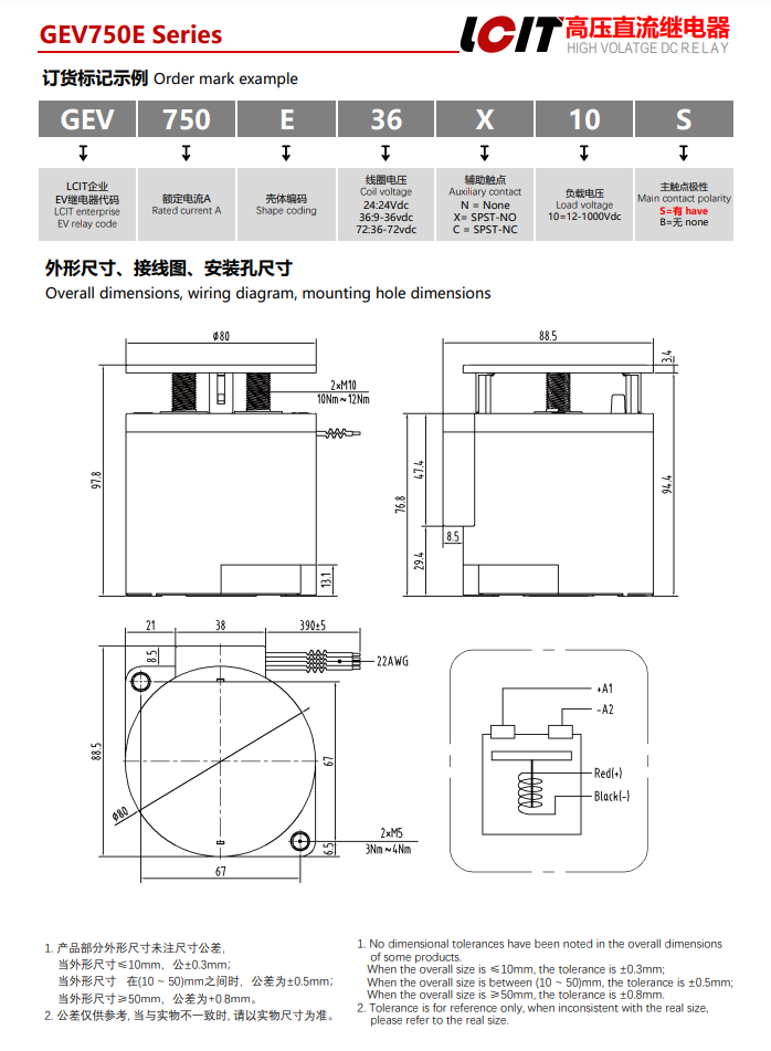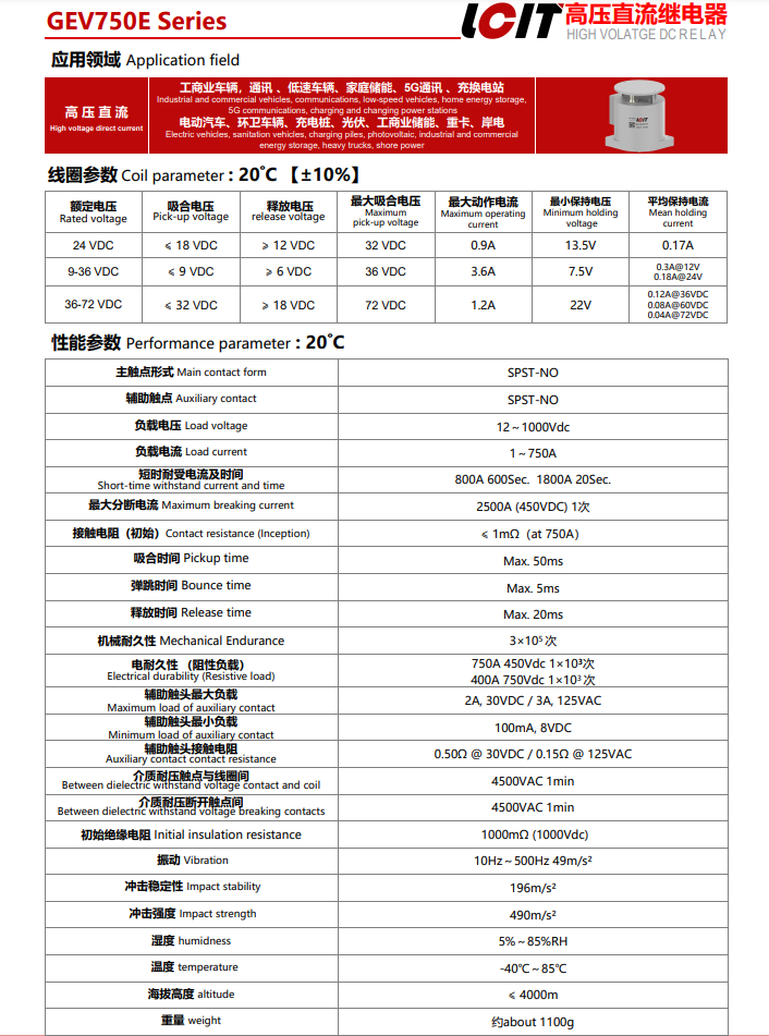 • 高压直流接触器 高压直流继电器GEV750E36X10S