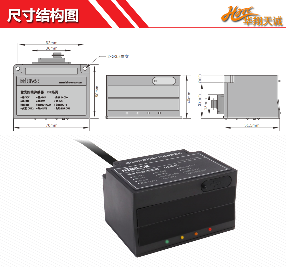 检测距离:0.25m~4m(@反射率90%) 0.25m~1m(@反射率10%)