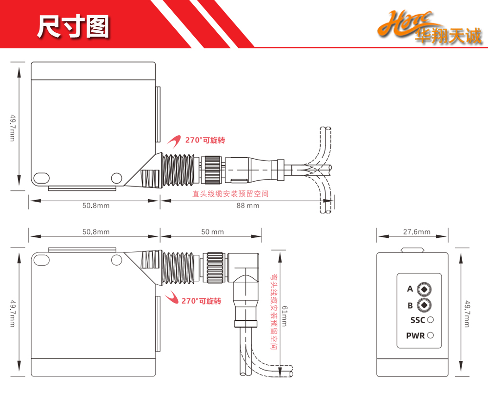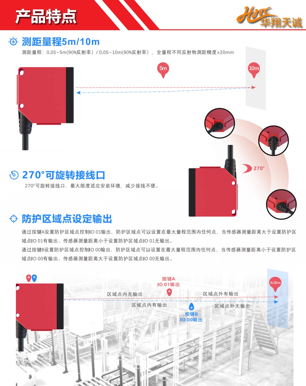有效量程:0.05~10米(@90%反光率) 0.05~3m(@10%反光率)