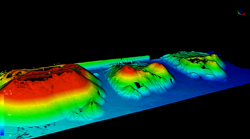 煤场区域划分与分区测量能够一次测完全场的所有料堆后,根据分割线的位置将图形上的料堆进行分割计算,计算出不同料堆的各自体积,并在三维图形上用颜色区分。