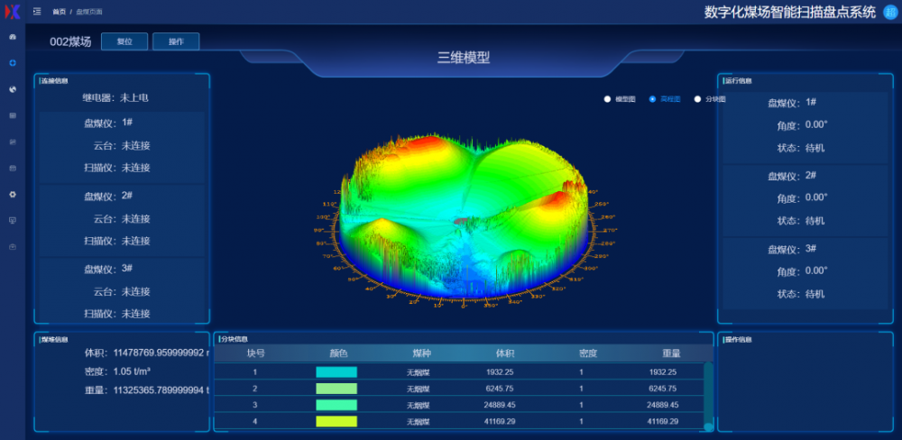 全部测量数据由扫描仪自动采集,无需人员操作,且盘煤过程不受机械条件与煤场环境影响。