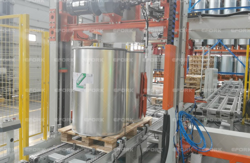 该项目是国内光伏胶生产企业打造的标杆工厂中的重要组成部分,包含原料桶的自动出入库存储及集成自动灌装机,真空热合机,打带机,自动缠膜机等实现产品的自动包装。