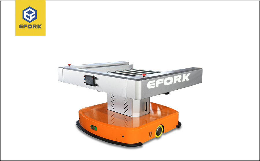 背负辊简式AGV小车是在AGV车体上放置托盘、料架、料箱等货物进行搬运,或在AGV尾部牵引料车,由磁条导引AGV通过识别地标选择目的地。该车运行平稳,适用于运输频繁、物料供应周期长的生产体系。
